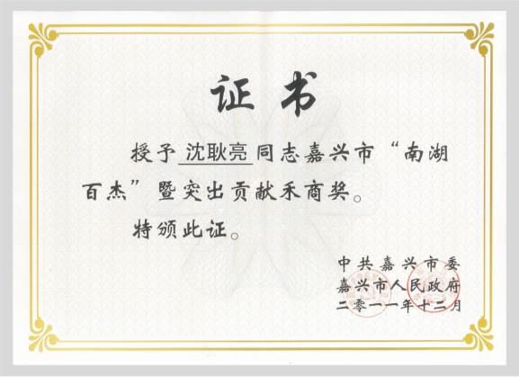日前,第二屆嘉興市“南湖百杰”優(yōu)秀人才表彰大會(huì)隆重召開,我公司董事長沈耿亮喜獲“‘南湖百杰’暨突出貢獻(xiàn)禾商獎(jiǎng)”。