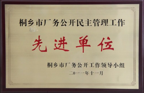 公司榮獲“桐鄉(xiāng)市廠務(wù)公開民主管理工作先進(jìn)單位”稱號