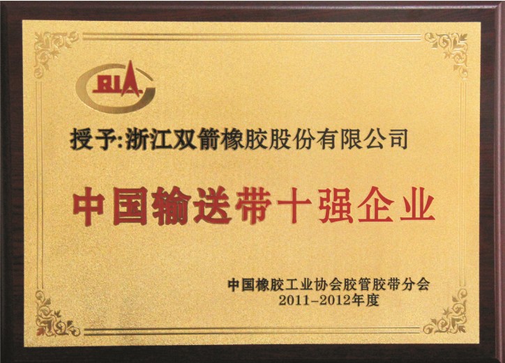 會上,根據(jù)膠管膠帶分會2011年和2012年上半年會員企業(yè)主要經(jīng)濟技術(shù)指標完成情況,并根據(jù)企業(yè)產(chǎn)品不同,企業(yè)管理體系認證情況,企業(yè)質(zhì)量創(chuàng)新能力情況,企業(yè)環(huán)保實施情況,執(zhí)行標準情況、產(chǎn)品質(zhì)量監(jiān)督抽查情況,獲得中國名牌、馳名商標及獲得中國橡膠工業(yè)協(xié)會質(zhì)量授信標志等情況,根據(jù)V帶、輸送帶和膠管產(chǎn)品評定行業(yè)十強實施辦法,經(jīng)膠管膠帶專家組進行打分綜合評定,分別評選出2011-2012年度輸送帶、V帶、膠管三大產(chǎn)品前十強企業(yè)。我公司再次獲得“中國輸送帶十強企業(yè)”的殊榮。