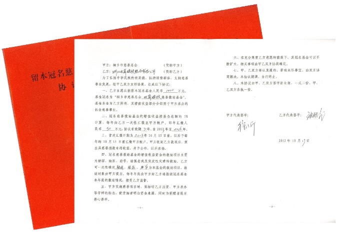 當(dāng)天會(huì)場(chǎng)還舉行了企業(yè)留本冠名基金簽約儀式。我公司大力支持慈善事業(yè),自愿認(rèn)捐留本冠名基金1000萬(wàn)元,其增值收益資金全部用于桐鄉(xiāng)市慈善事業(yè),助困、助醫(yī)、助學(xué)、助孤老殘及突發(fā)性災(zāi)難救助?!靶杏械?,愛無(wú)界”,雙箭愿與市慈善總會(huì)一同努力,在扶貧助困、促進(jìn)和諧社會(huì)建設(shè)中作出更大貢獻(xiàn)。